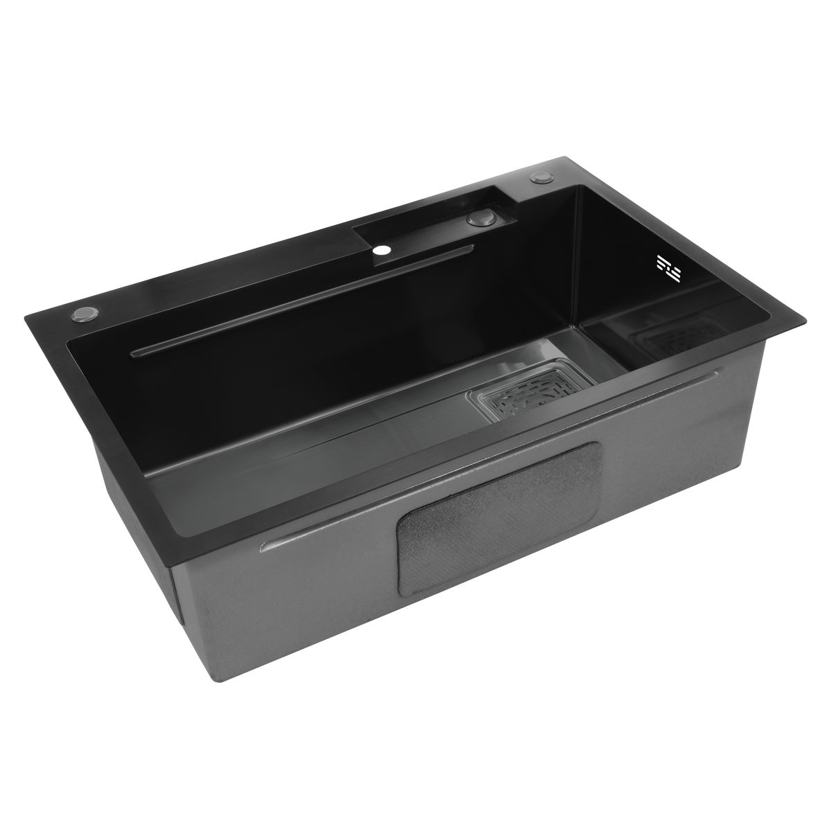 Мойка из пищевой нержавеющей стали SUS304 3 мм, размером 720*450 мм со сложным рельефом дна и трехступенчатым инженерным сливом. Глубина мойки 220 мм. В комплекте смеситель, встроенный душ. На надкрылке имеется прямоугольное отверстие для смесителя, дополнительное отверстие для дозатора.