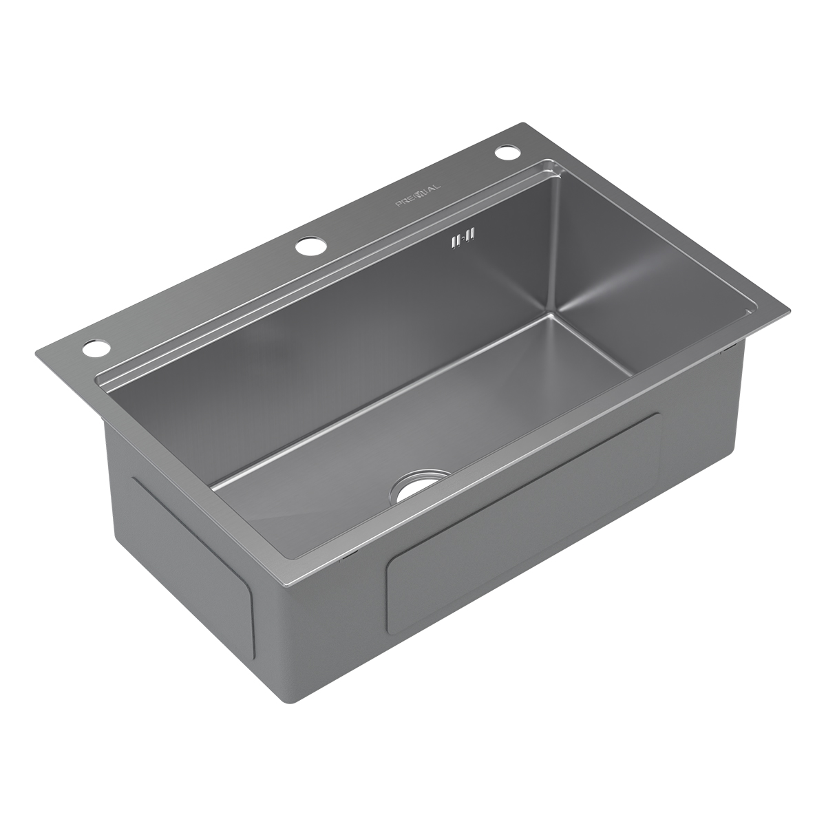 На крыле мойки — гравировка логотипа Premial® и марки стали.