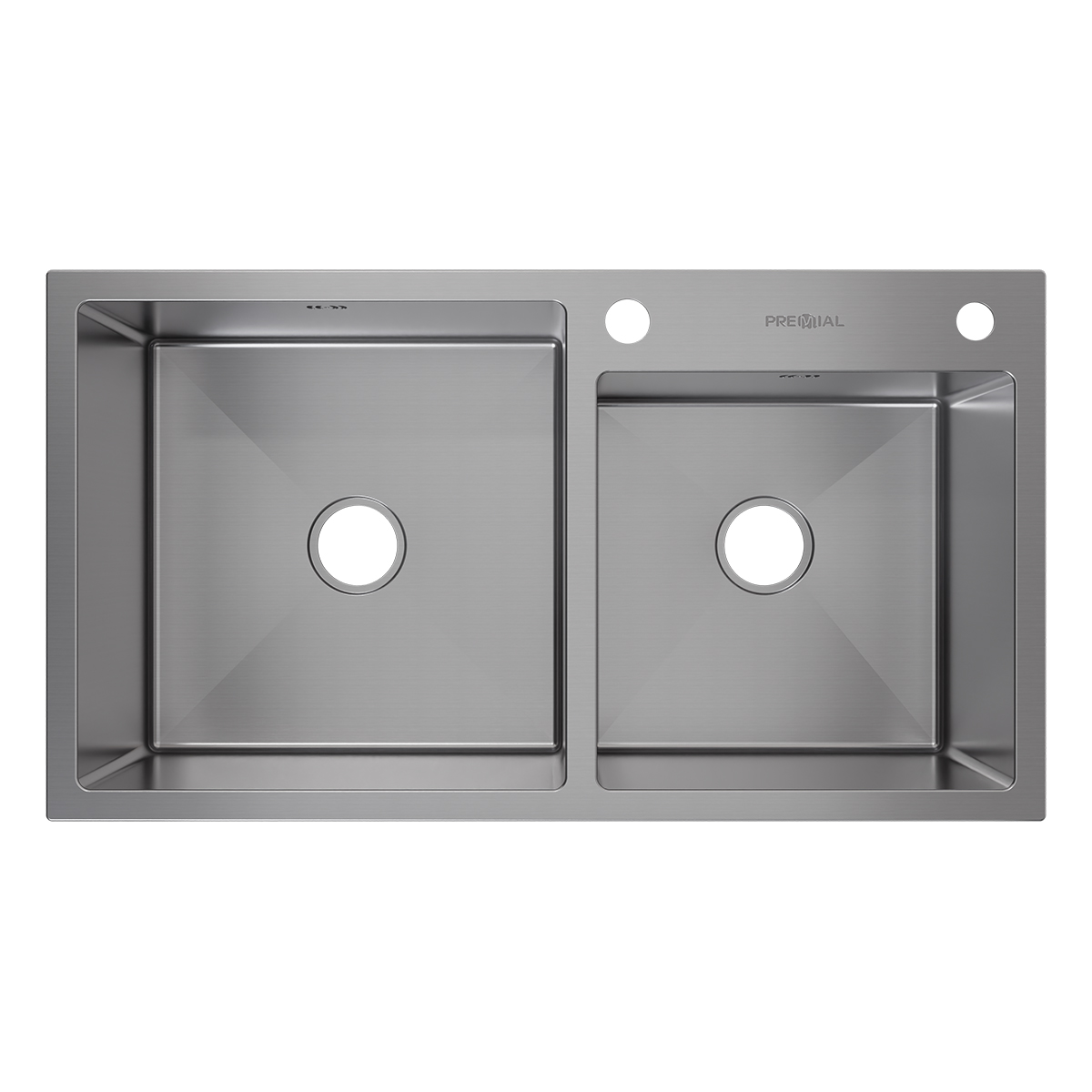 Мойка из пищевой нержавеющей стали марки 304, размер 780х430 мм. У модели 2 чаши разного размера — 380х380 мм и 325х325 мм. Глубина 220 мм, вес нетто 8,5 кг, вес брутто 11,5 кг.