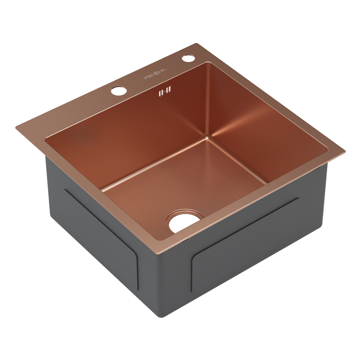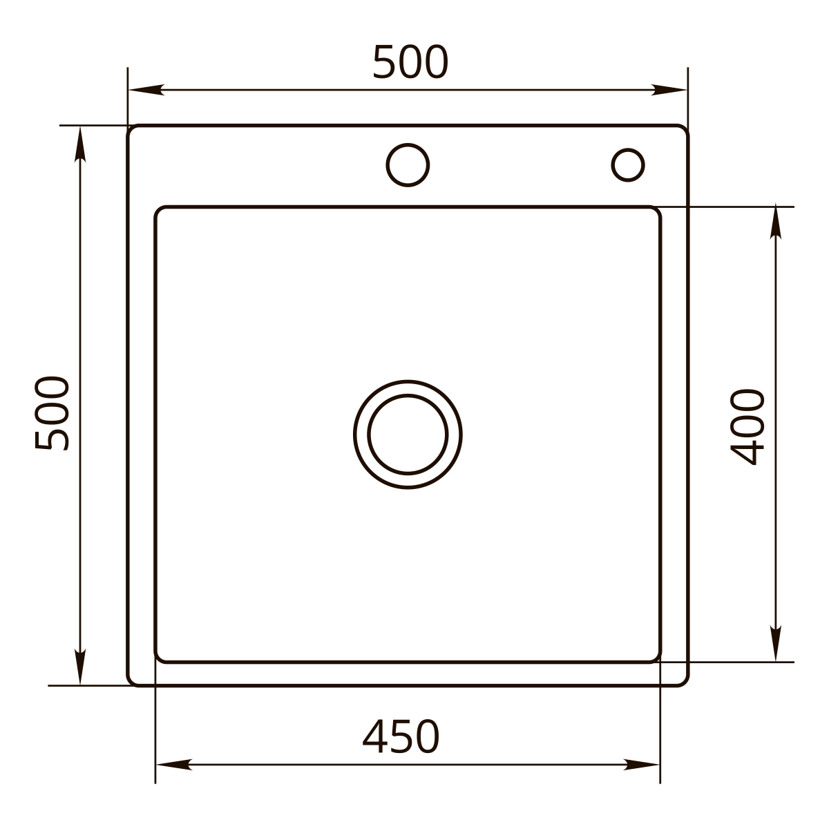 Кухонная мойка полностью ручной работы из нержавеющей стали до 3 мм, дно сварное, в форме «конверта», корпус обливают шумопоглощающим составом серого цвета. Общие габариты мойки 500х500 мм, глубина чаши 220 мм, размер 450х400 мм. Вес нетто 5,7 кг, вес брутто 8,3 кг. В центре надкрылка одно отверстие под смеситель, в правом углу — одно отверстие под дозатор. В стандартном варианте комплектации в качестве аксессуаров к мойке идет телескопическая корзина-коландер Kit из стального прутка на пластиковых держателях и дозатор для жидких моющих средств Cherry.