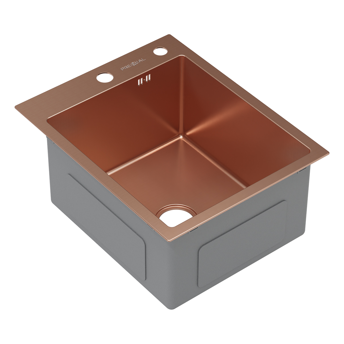 На крыле мойки — гравировка логотипа Premial® и марки стали.
