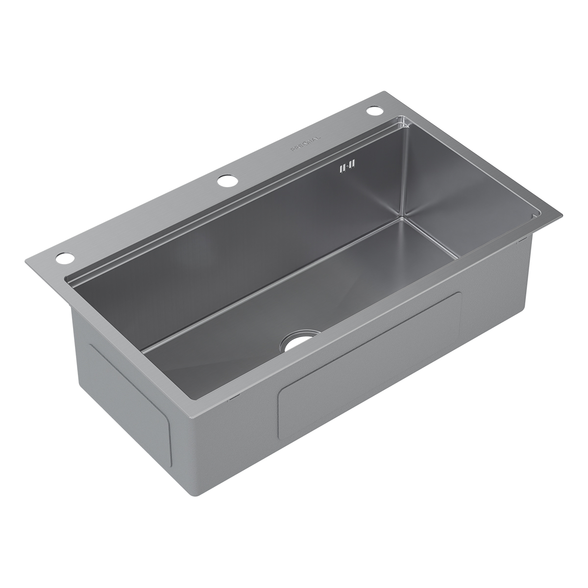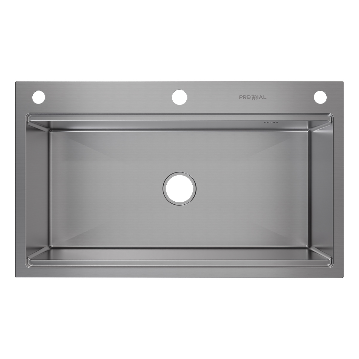 - На крыле мойки — гравировка логотипа Premial® и марки стали.