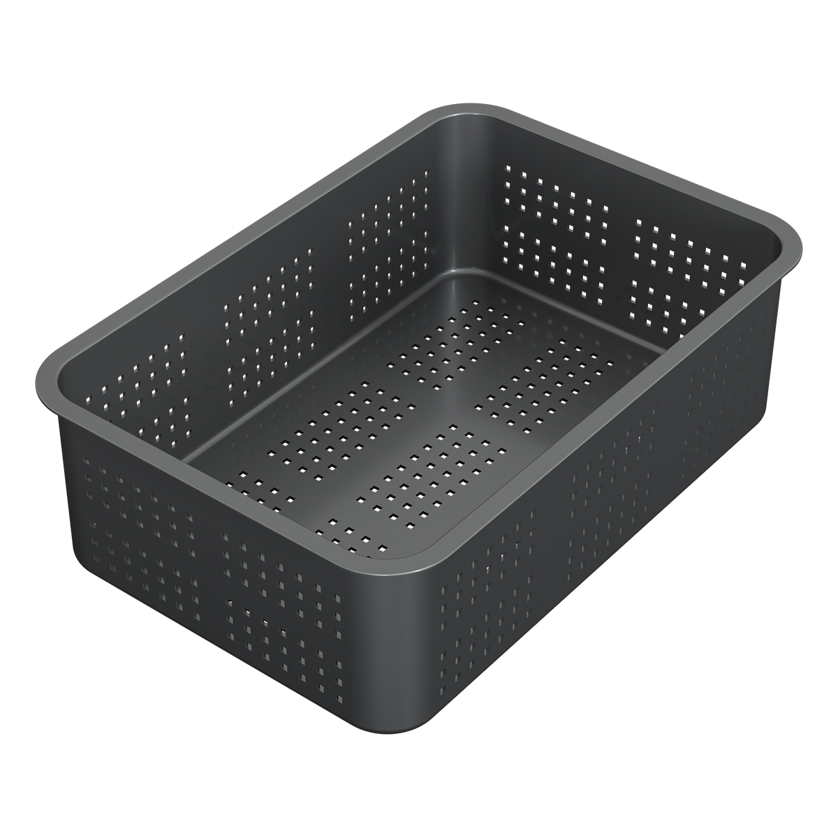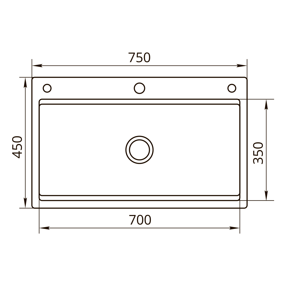 Мойка из пищевой нержавеющей стали 3 мм, габаритные размеры 750х450 мм, выполнена вручную. Размер чаши 700х350 мм. Дно сварное «конвертом», корпус в шумопоглощающей обливке серого цвета из натуральных пигментов и нейтральных полимеров. Сделано одно отверстие под смеситель и два отверстия под дозатор/кран питьевой воды. Аксессуары к мойке: дозатор для жидких моющих средств Cherry и дуршлаг-корзина Crate. У мойки комфортная глубина 220 мм, снижающая разбрызгивание воды, малый радиус скругления углов чаши — для большей вместимости.