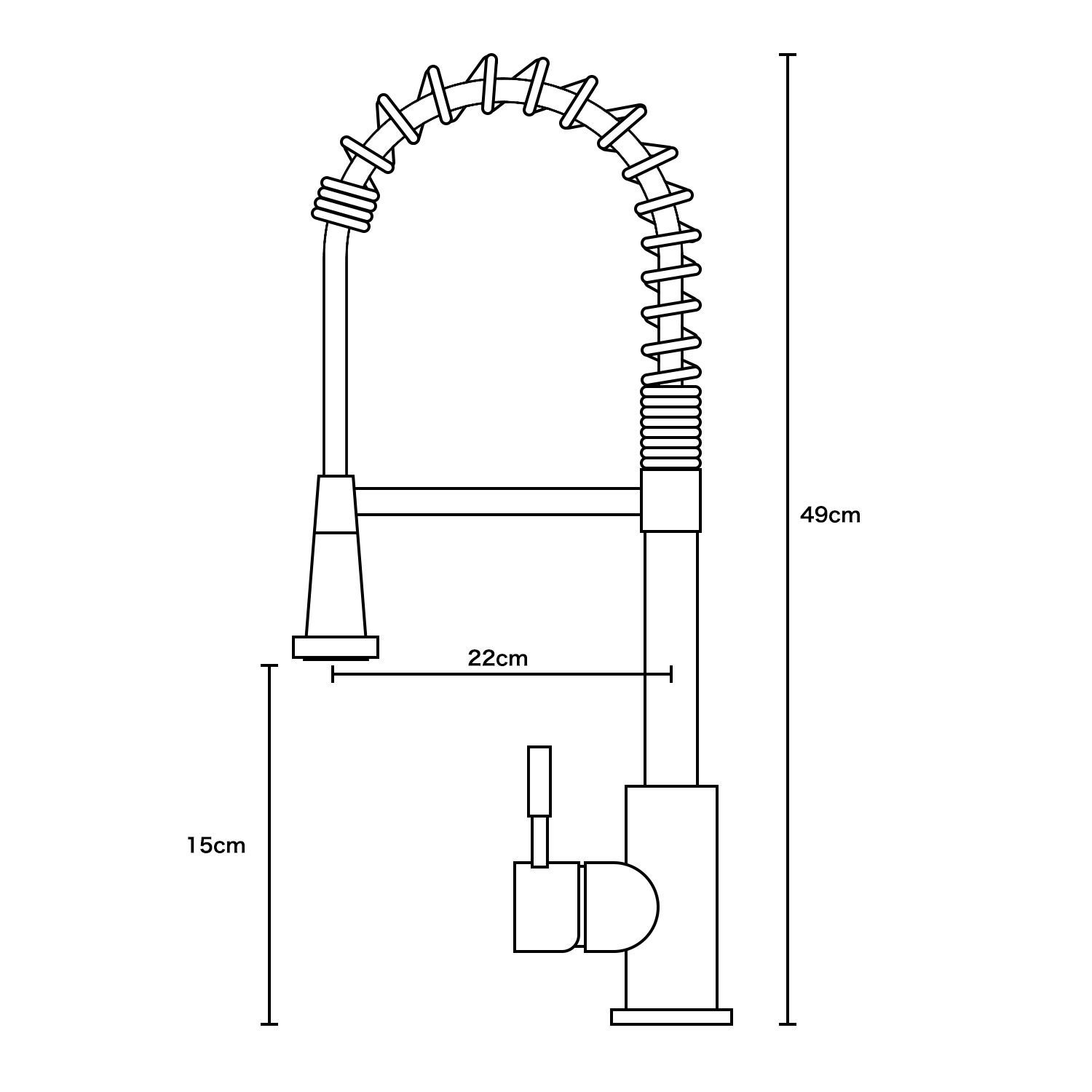 Современный смеситель для кухни с гибким изливом на пружине и вытяжной лейкой, оснащенной кнопкой для переключения режимов струи. Управление осуществляется одним рычагом.
