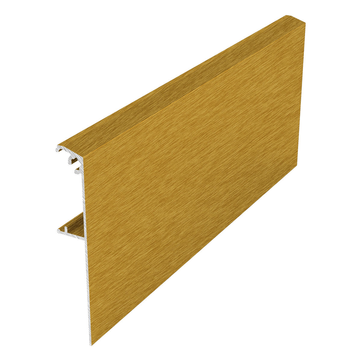 Профиль выполняет декоративную функцию, закрывая верхнюю направляющую и механизмы раздвижения в подвесной системе. Защелкивается над треком, установленном в дверном проеме в потолок. Устанавливается по лицевой стороне проема. По длине накладка равна верхней подвесной направляющей.