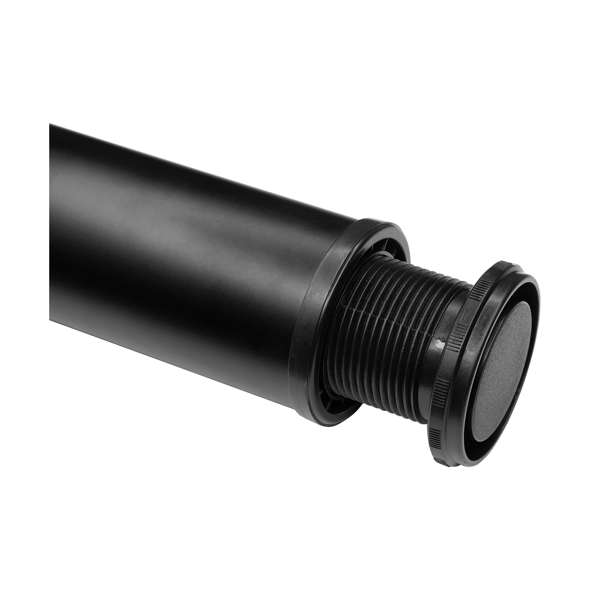 Опора комплектуется из трех частей: стальная труба в соответствующем покрытии, стальная крепёжная площадка типа «лепесток» и регулируемая по высоте полимерно-сотовая нижняя заглушка для трубы («основание») черного цвета.