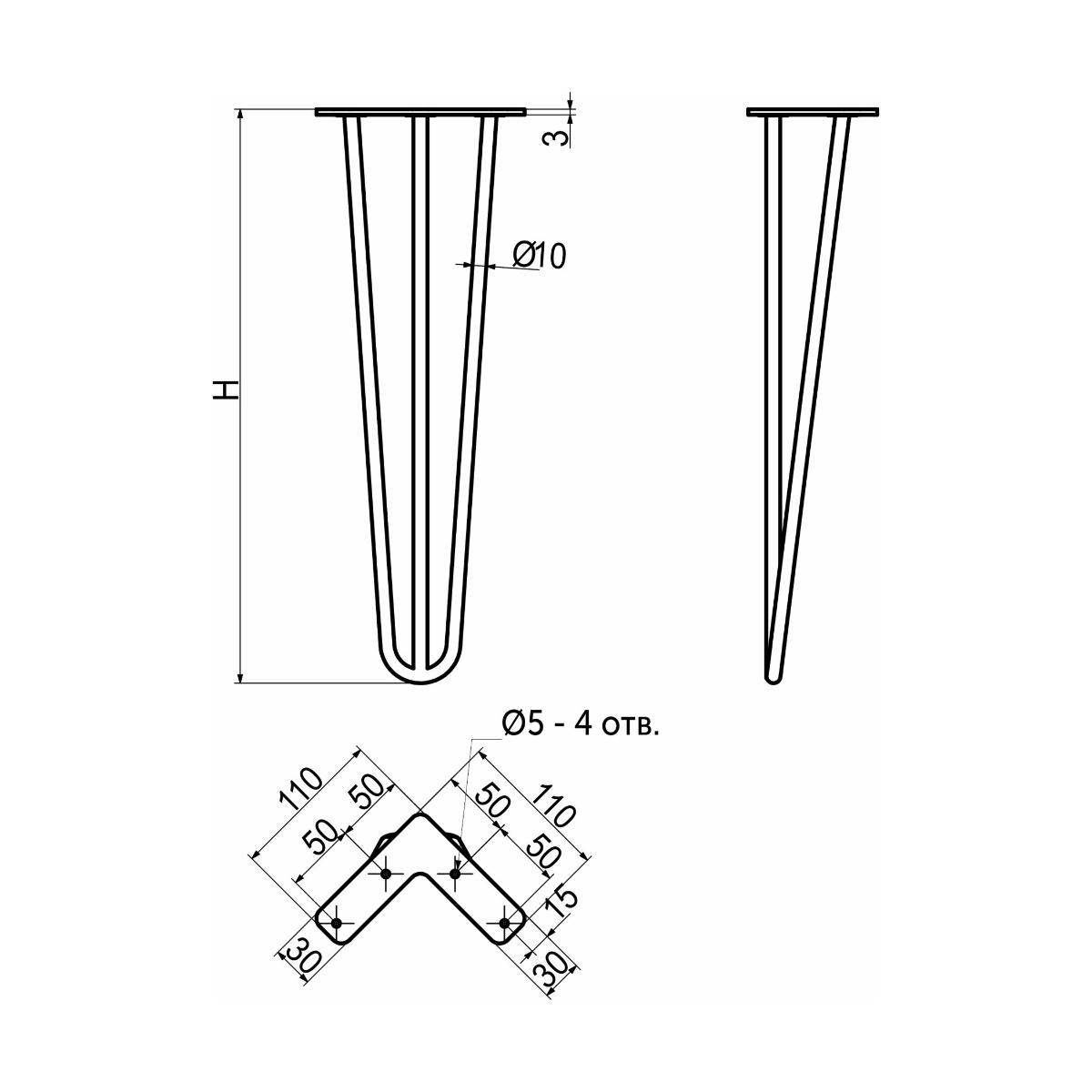 Опора мебельная металлическая изготовлена из металлического прута d10 мм.
