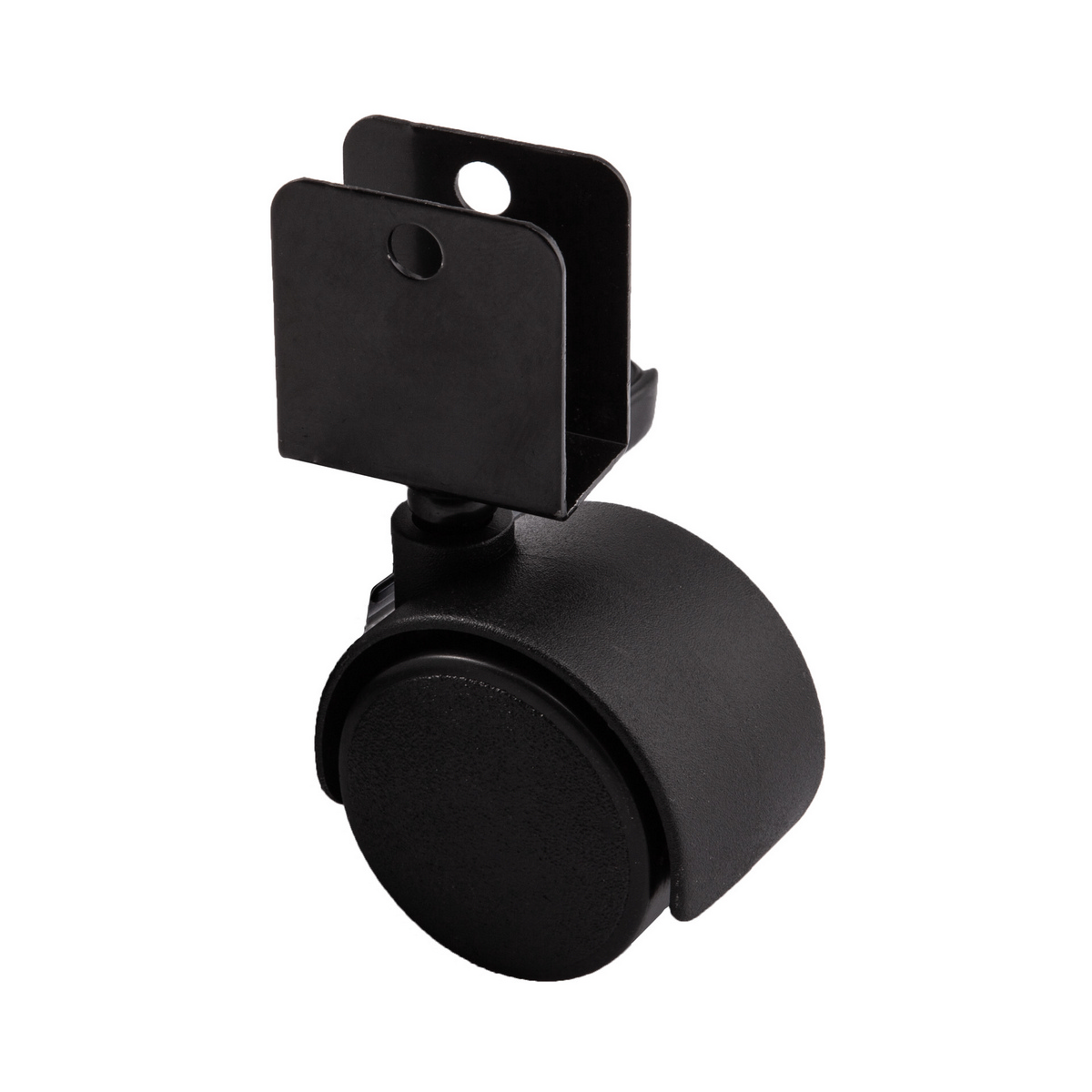 Колесо поворотное пластиковое с  U-образное креплением в торец ДСП 16. Рекомендуемая нагрузка на 1 колесо - до 15 кг