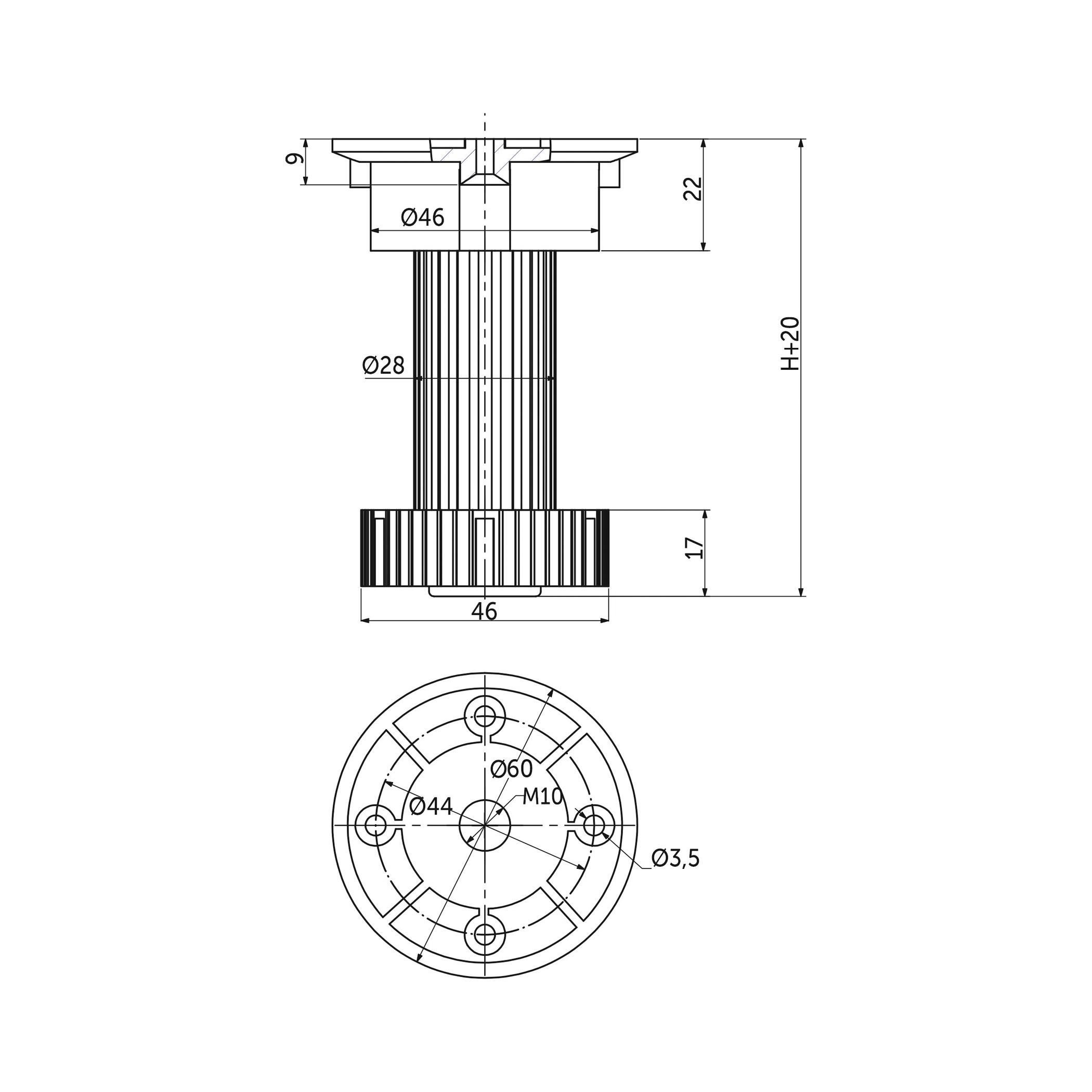 Нагрузка на опору - 190кг. Материал - полипропилен. Опора регулируется по высоте.