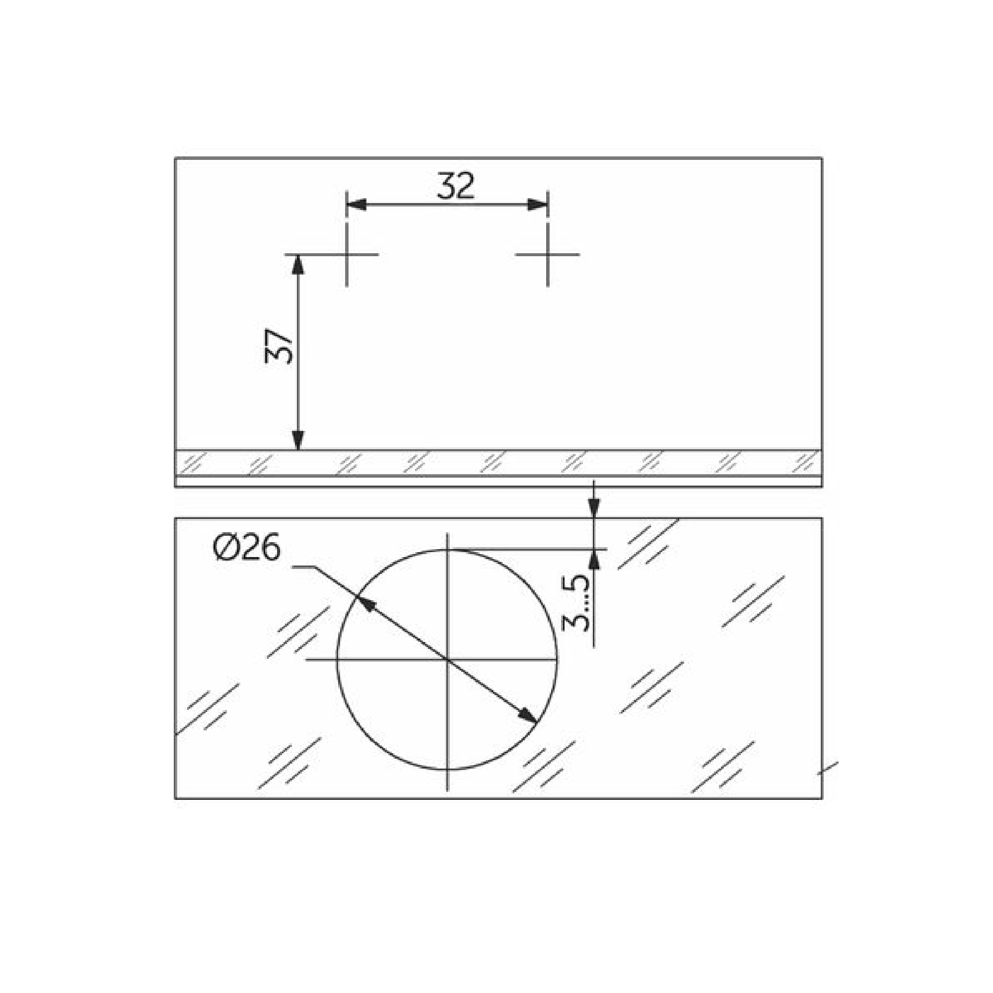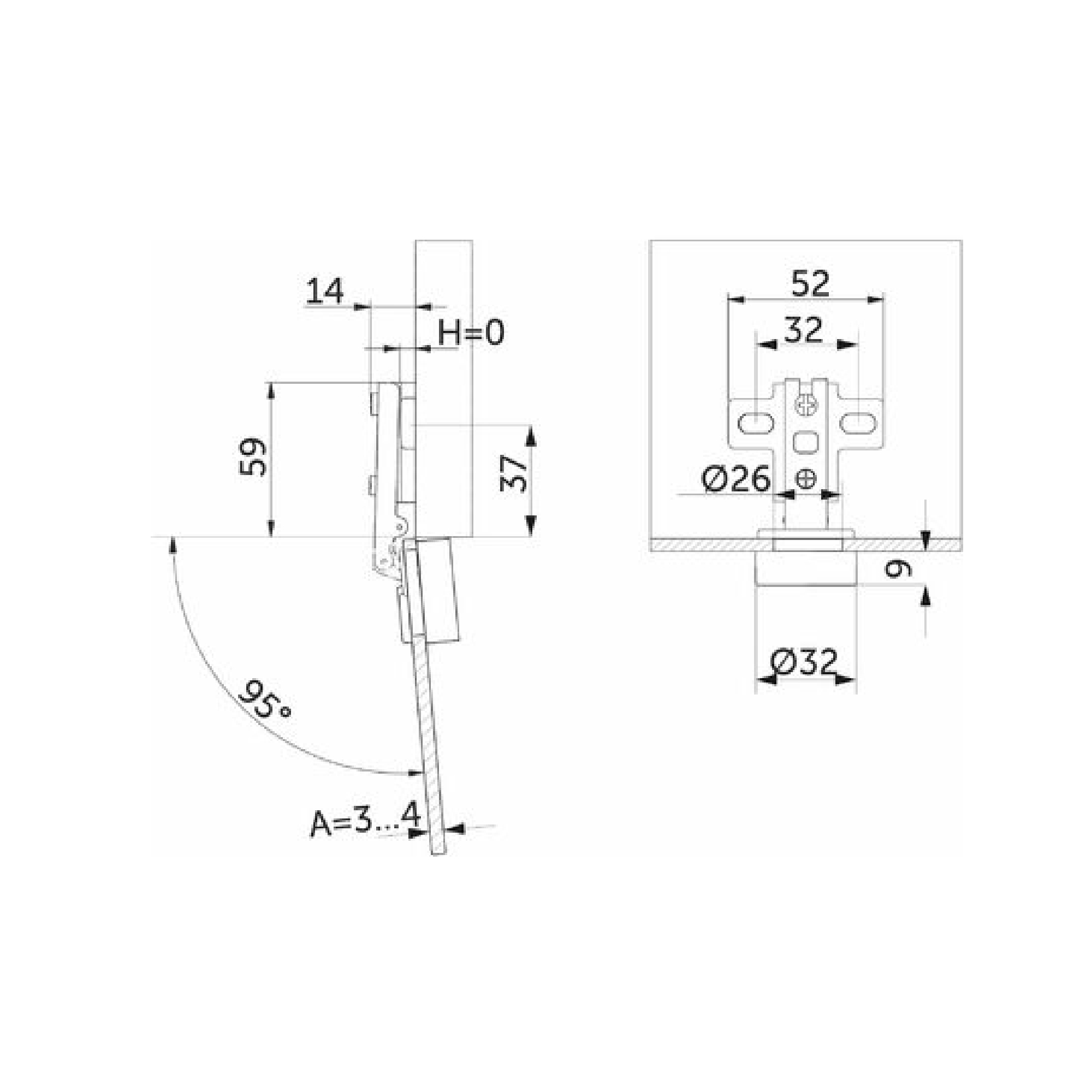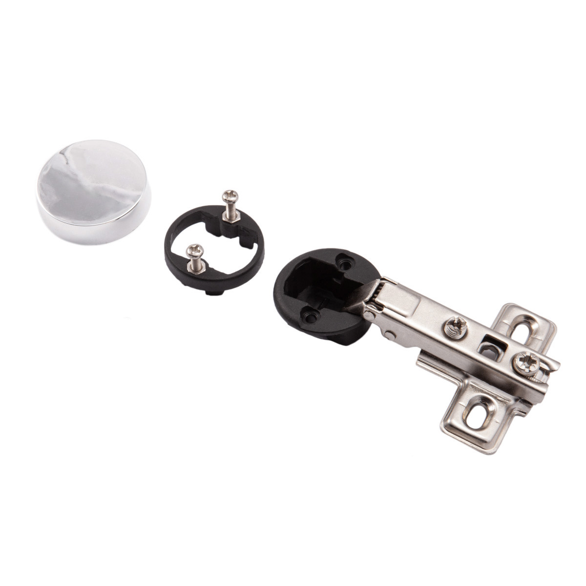 Петля накладная для стеклянных фасадов 09 + крепление h=0+заглушка круглая, хром, AKS