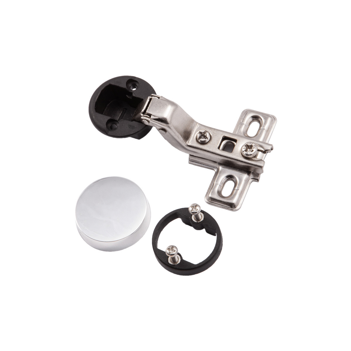 Петля вкладная для стеклянных фасадов 07 + крепление h=0+заглушка круглая, хром, AKS