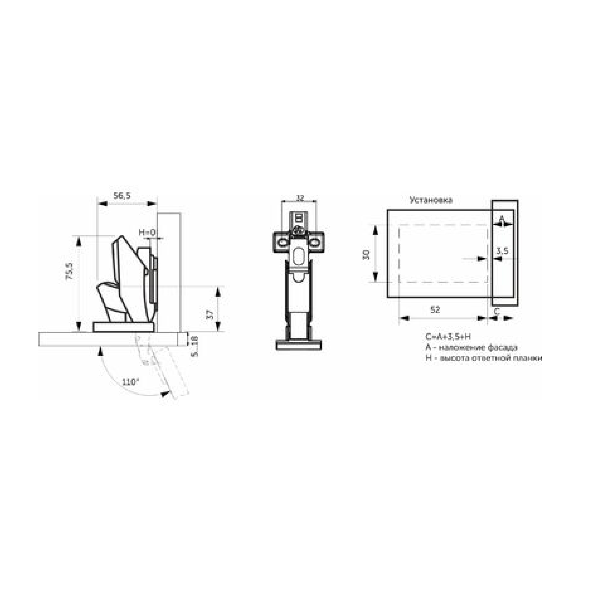 Петля для стеклянных фасадов 2D, чашка под клей, гидравлическая накладная 09 с крепл. Н=0 , clip-on, накладка, AKS PLUS
