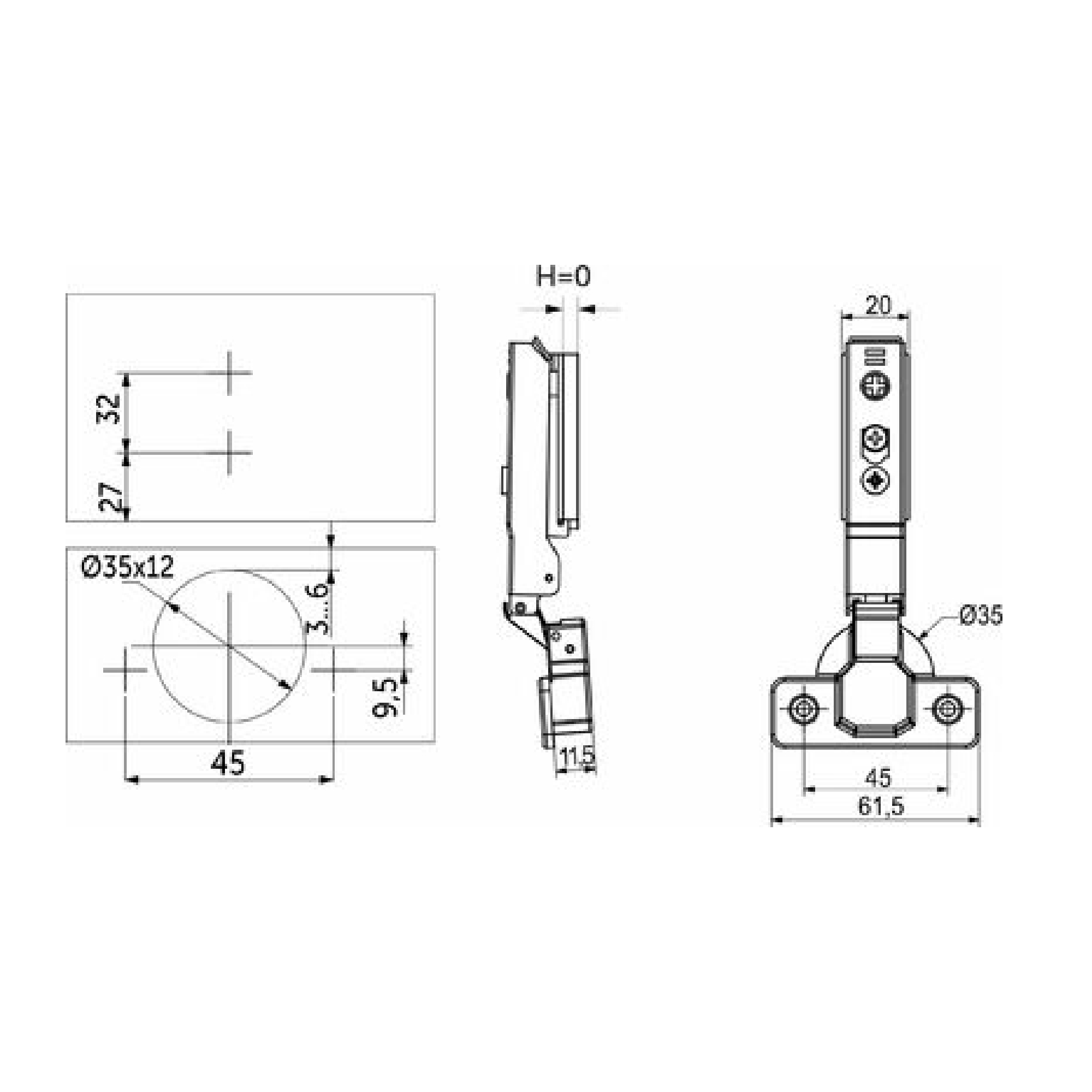 Петля 3D BLACK гидравл. накладная 09, 48мм узкая планка, clip-on, шурупы в комплекте, AKS PLUS