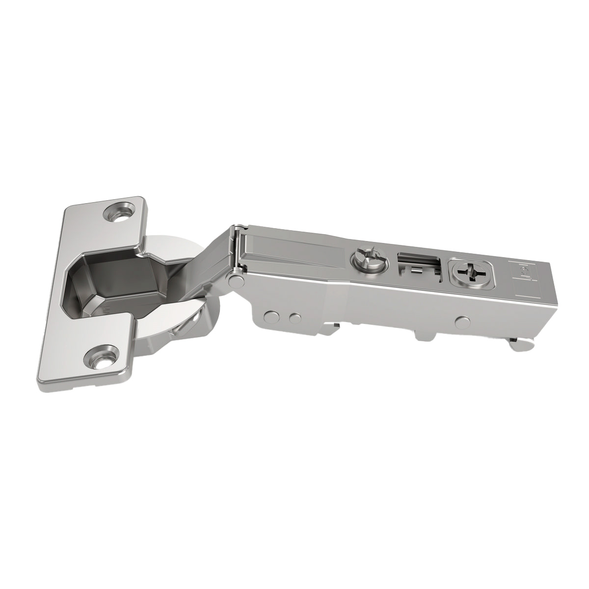 Трехмерная регулировка петли дает возможность отрегулировать фасад по глубине, высоте и ширине. Открывание угла на 105 гр.