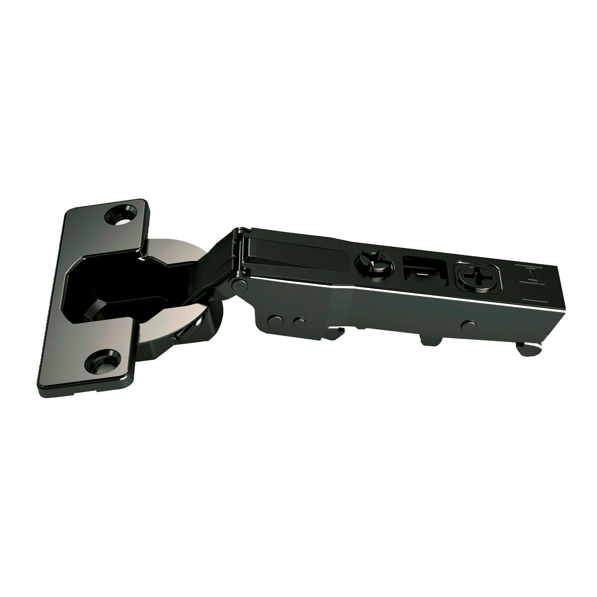 Трехмерная регулировка петли дает возможность отрегулировать фасад по глубине, высоте и ширине. Открывание угла на 105 гр.