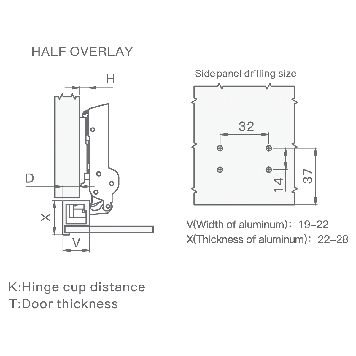 Петля мебельная четырехшарнирная полунакладная с доводчиком для алюминиевого профиля.