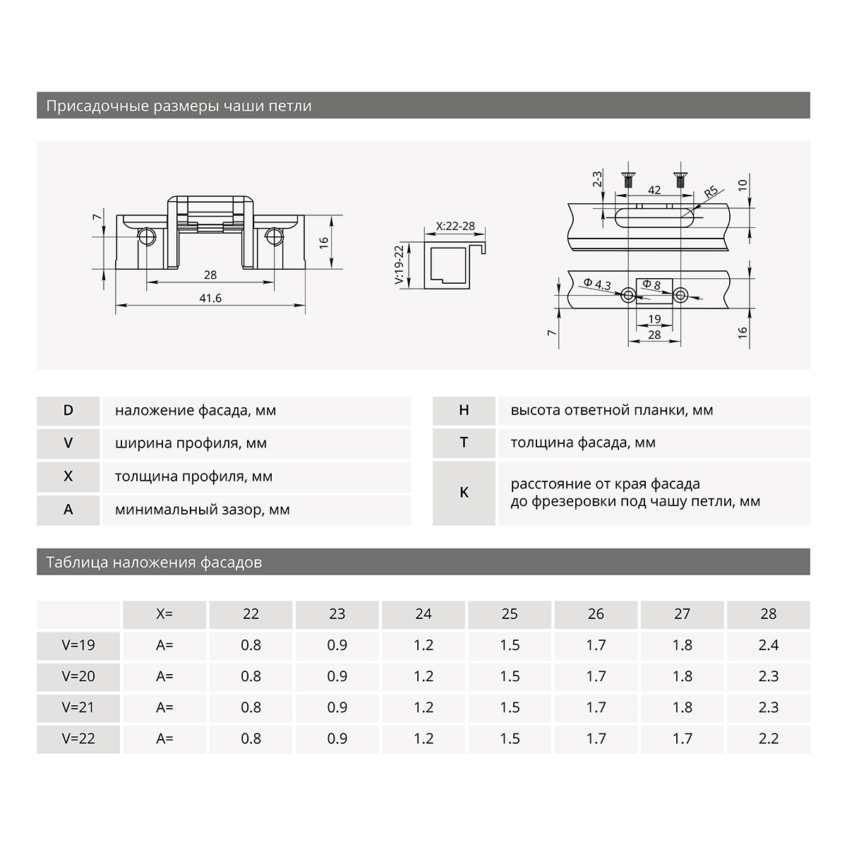 Петля мебельная четырехшарнирная полунакладная с доводчиком для алюминиевого профиля.