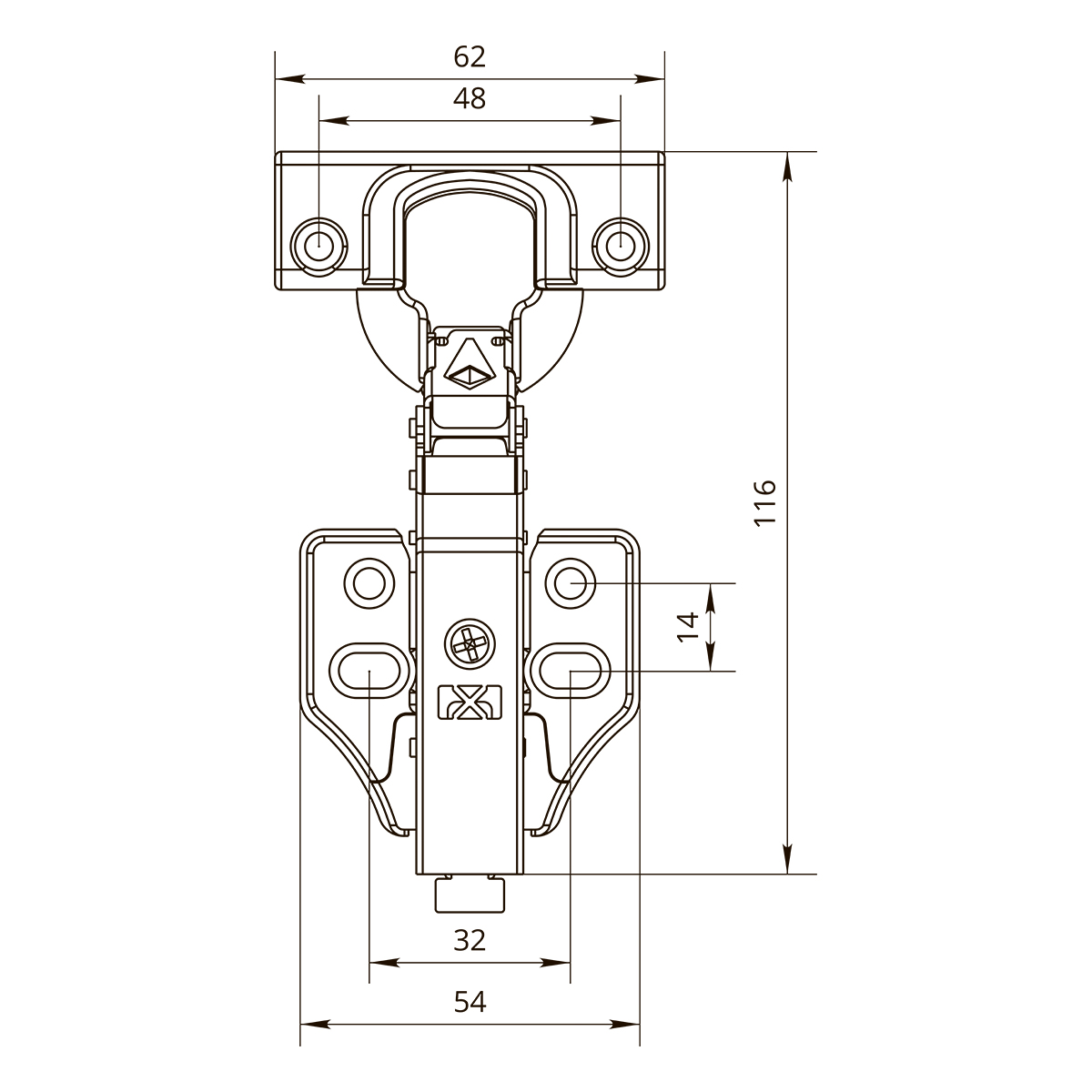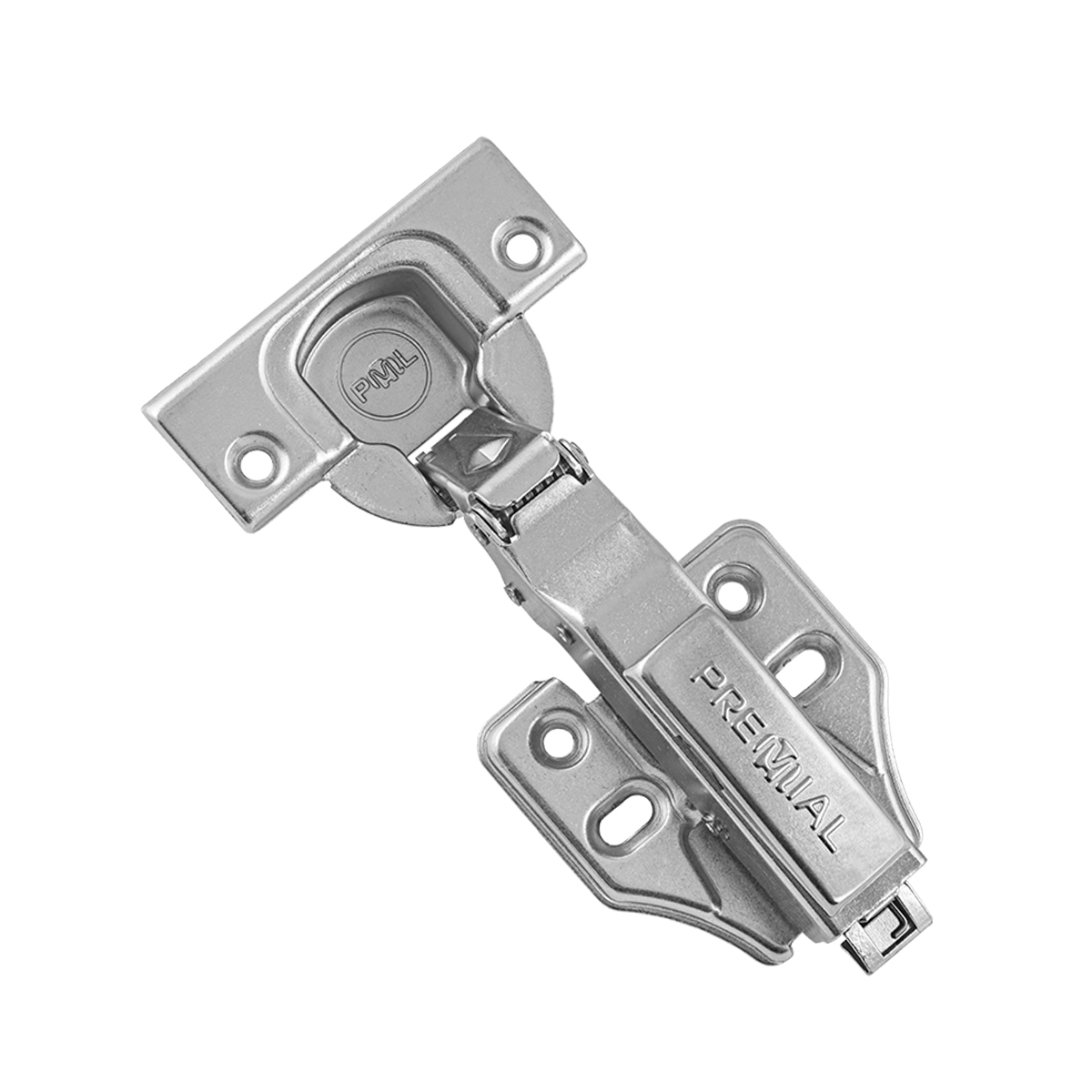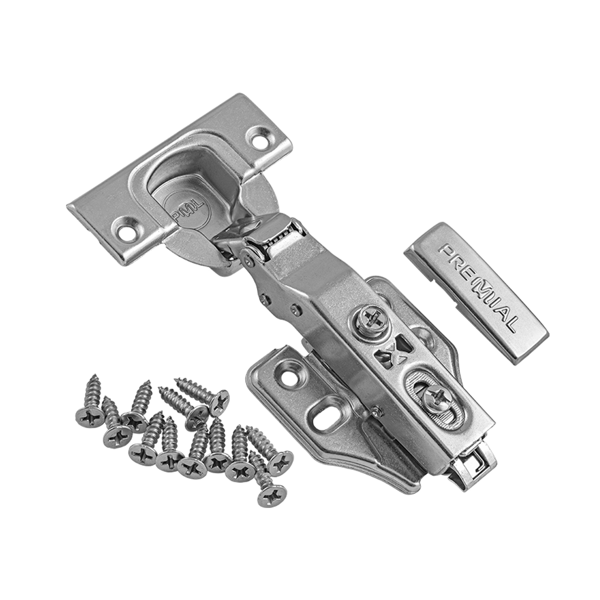 Петля с доводчиком накладная ТМ PREMIAL с широкой монтажной планкой Н=0 под 4 самореза и системой фиксации Clip-on, угол открытия 105*