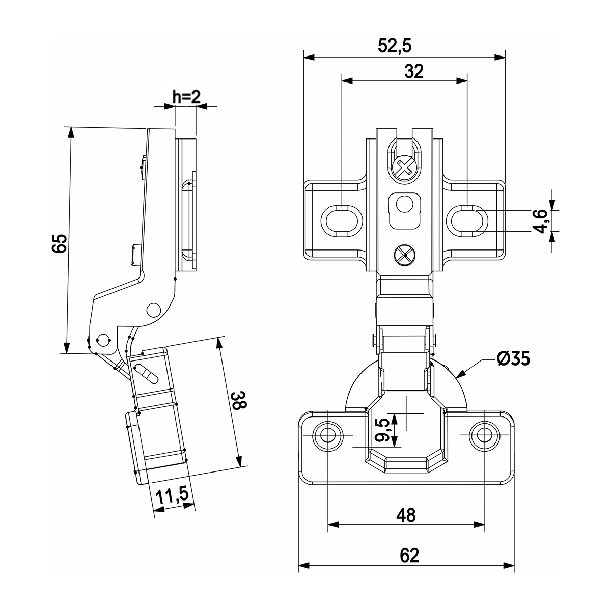 Петля мебельная PREMIAL вкладная без доводчика с монтажной планкой Н=2 и системой крепления Slide-On