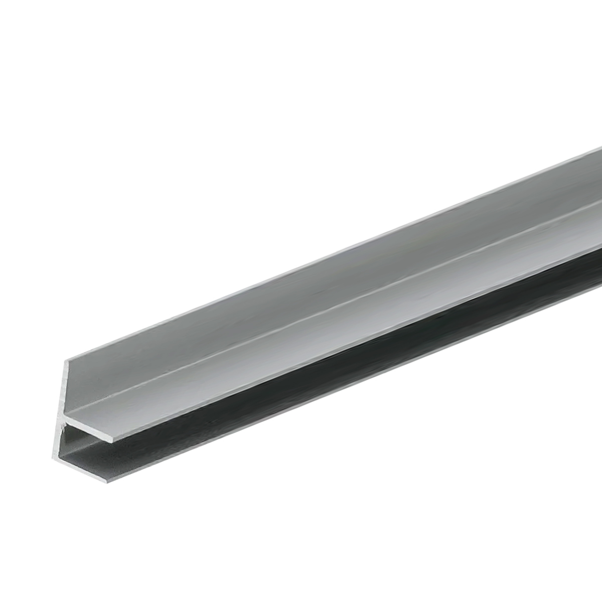 F-образный угловой профиль для стеновой панели (6 мм) выполнен из качественного сплава алюминия. Он соединяет две части распиленной панели под углом 90 градусов и защищает место среза от влаги и грязи.