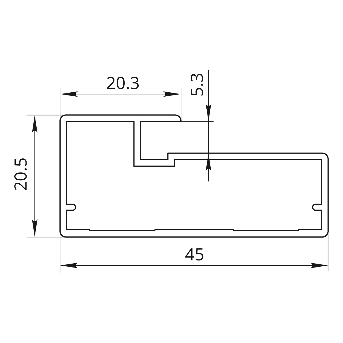 Рамочный профиль для стеклянных фасадов, барных витрин. Видимая лицевая часть 20 мм, длина профиля 6000 мм.