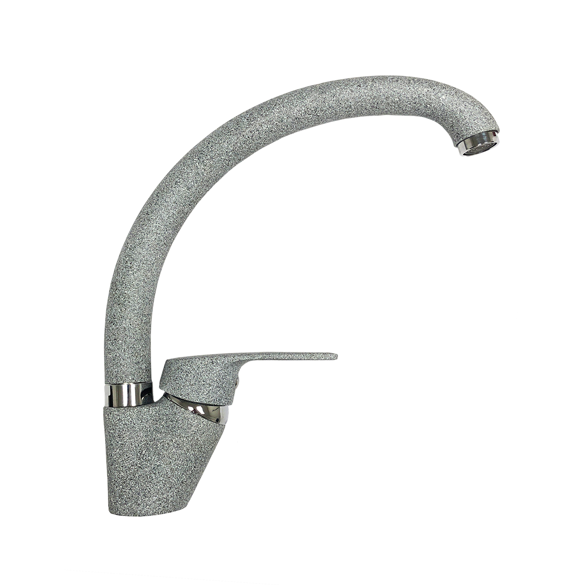 Кухонный смеситель полукруглой формы с одним рычагом. Корпус выполнен из латуни, излив стальной, круглый, поворотный. Сверху композитное покрытие из мраморной крошки. Смеситель Гемма оптимально подходит для каменных моек коллекции Cosmos в соответствующих матовых декорах. Дополнительно смеситель комплектуется гибкой подводкой 60 см длиной, а также крепежным комплектом.