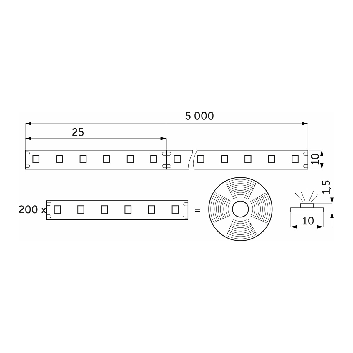 Тип диодов 2835, количество диодов 1200, напряжение 12В, степень защиты IP20, мощность 19,2W/m, напряжение 24V, ширина 9 +-1мм, нейтральный белый (4000K) - 5м, CRI>80