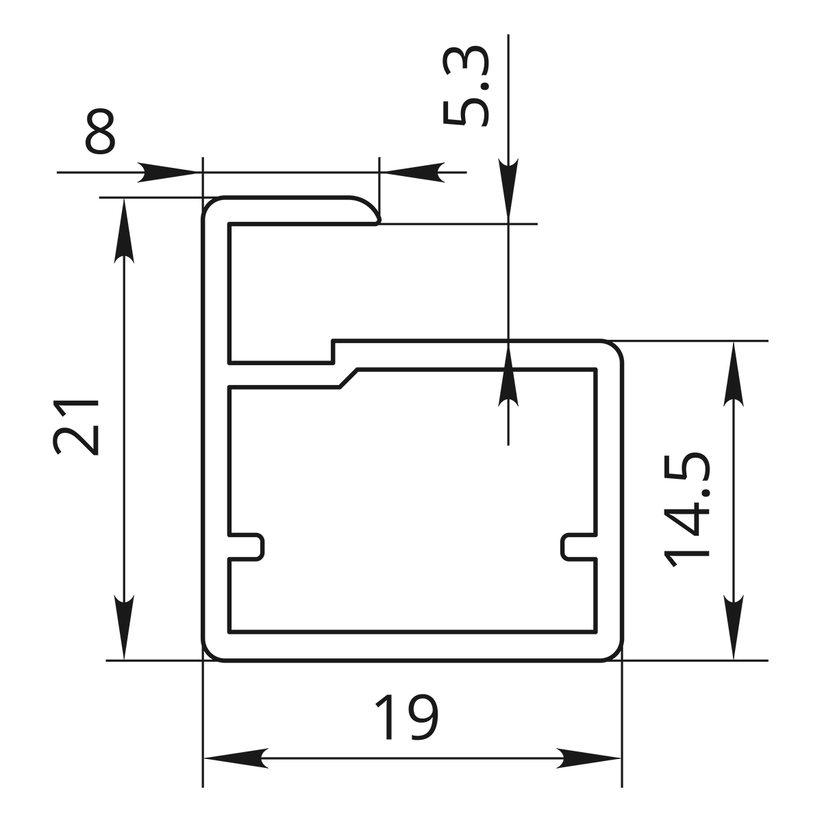 Рамочный алюминиевый профиль для стеклянных фасадов, длиной 6000 мм. Видимая часть прямая 8 мм