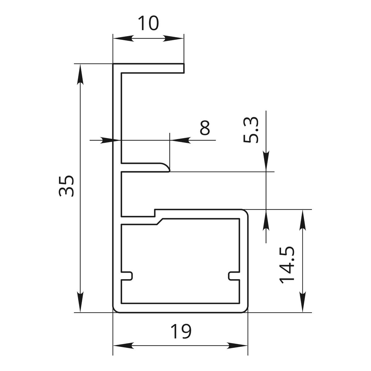 Профиль-ручка для стеклянных фасадов длиной 6000 мм. Видимая часть над наполнением 10 мм.