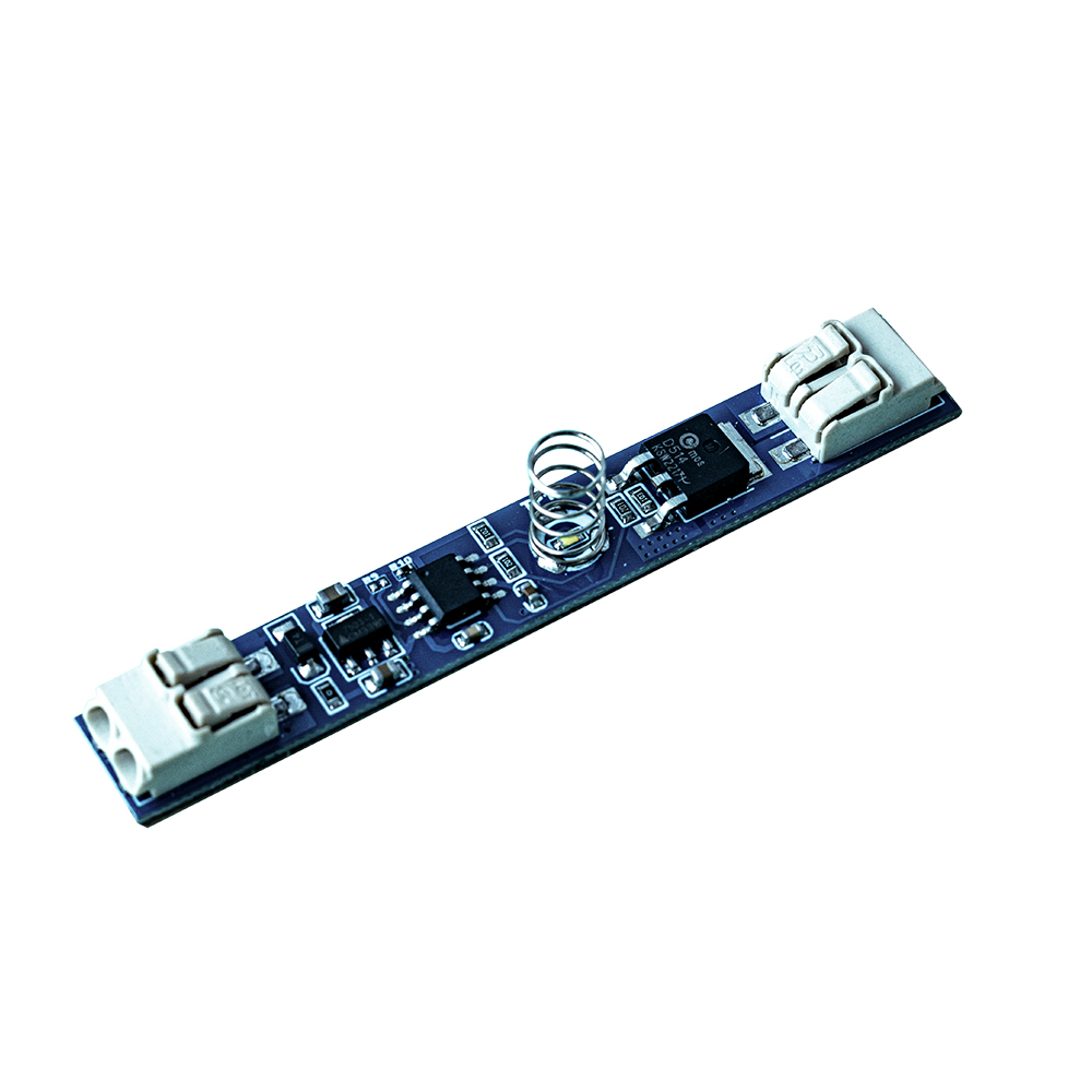 Сенсорный выключатель с терминалами,встраиваемый с функцией диммирования и функцией памяти последнего состояния, с пружиной 10 мм на плате размером 43х10 мм.