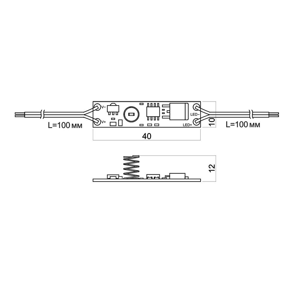 Сенсорный выключатель DPs-3W с проводами, встраиваемый, с функцией диммирования и функцией памяти последнего состояния, плавным включением/выключением, с пружиной 10 мм на плате размером 42х10 мм.