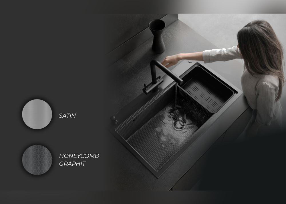Модель LAGOON 7545 для тех, кто выбирает удобство и продуманный дизайн. Большой размер делает её отличным решением для просторных кухонь и активного ежедневного использования. Главная особенность новинки – декоративная поверхность Graphite Honey Comb. Это не просто «красивый рисунок», а трендовая и практичная фактура: она смотрится эффектно в современных интерьерах и при этом повышает устойчивость к мелким механическим воздействиям. |